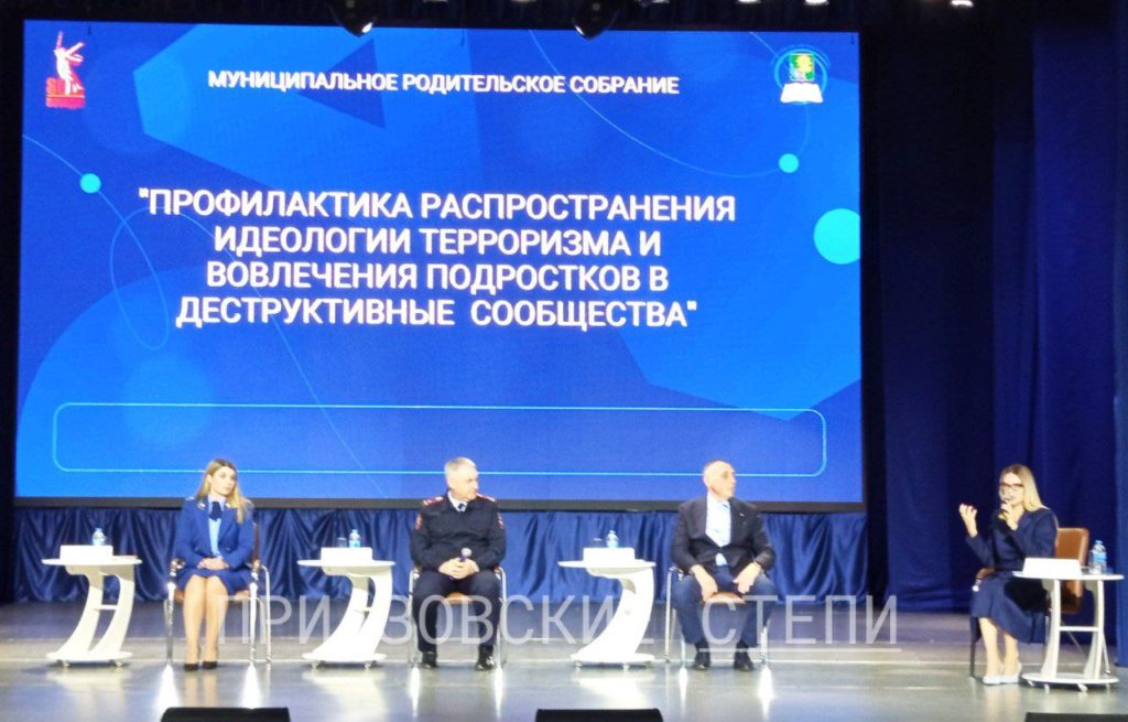 Полное название темы собрания — профилактика распространения идеологии терроризма и вовлечения подростков в деструктивные сообщества.