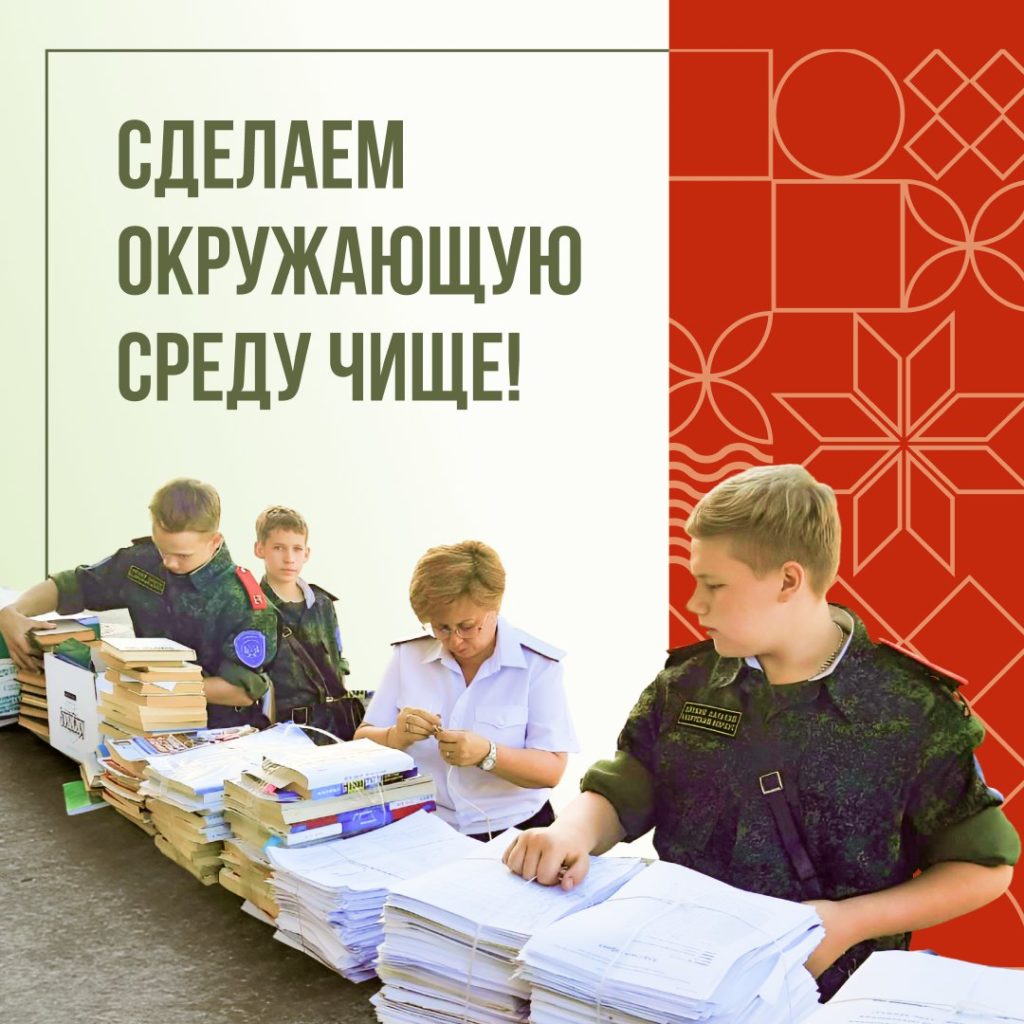 В нашей стране действует национальный проект «Экологическое благополучие», в рамках которого Всероссийское экологическое общественное движение «Экосистема» при поддержке Министерства природных ресурсов и экологии Российской Федерации проводит Всероссийской акции по сбору макулатуры «БумБатл».