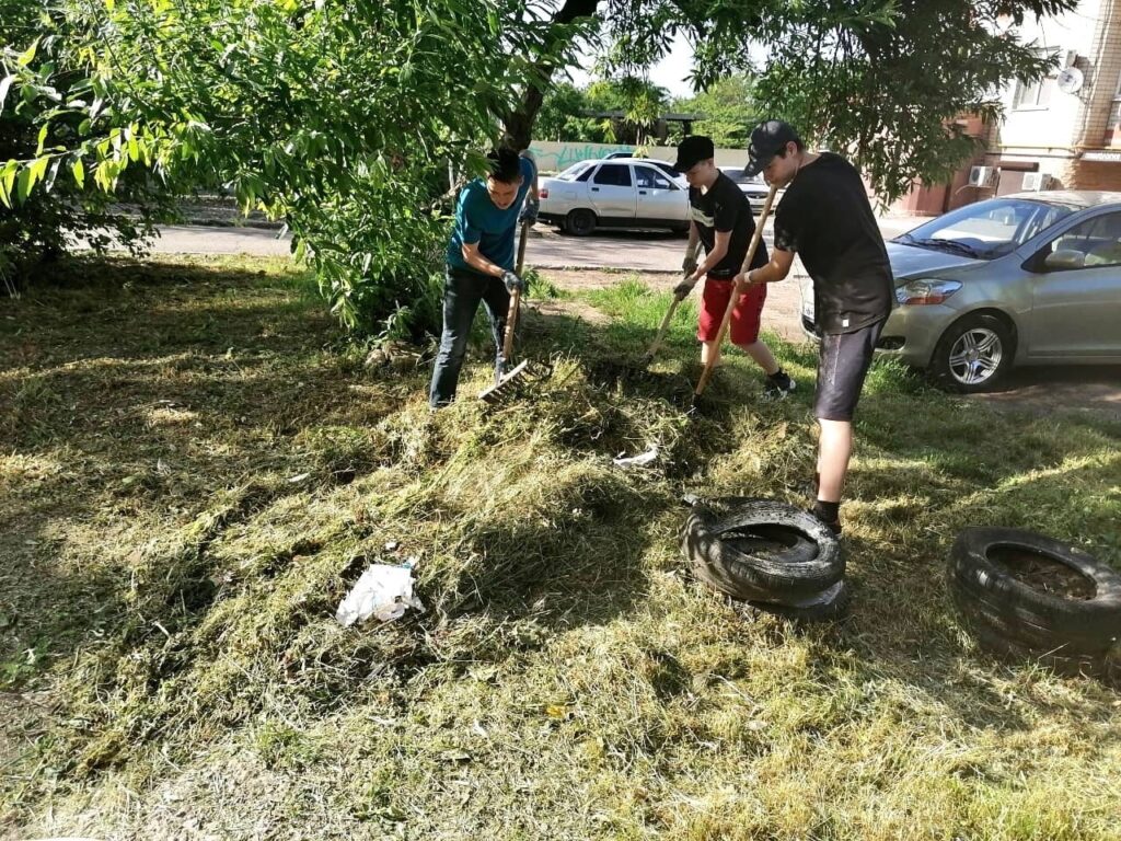 Воспитанники ВПК «Ейский патриот» навели порядок на прилегающей к клубу территории.