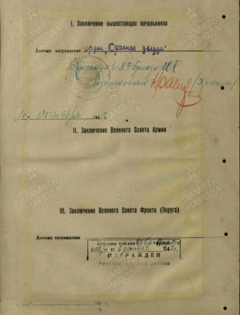 Участвовал в боях за Темрюк, ст.Анастасиевскую, п.Абрау-Дюрсо и п.Южную Озерейку. Проявил себя настоящим героем, был ранен, награждён орденом Красной Звёзды.