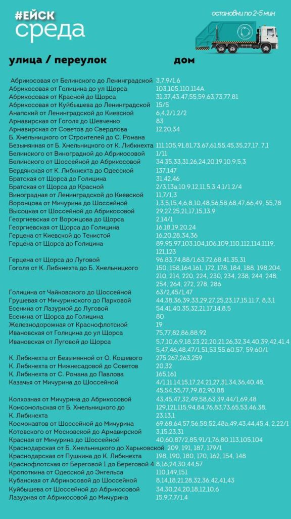 ЖКХ 16 июля 2025 Уборка мусора в Ейске продолжаетсяСегодня мусоровозы забирают отходы с улиц, где не установлены контейнеры. На каждой точке маршрута машина стоит от 2-х до 5-ти минут.