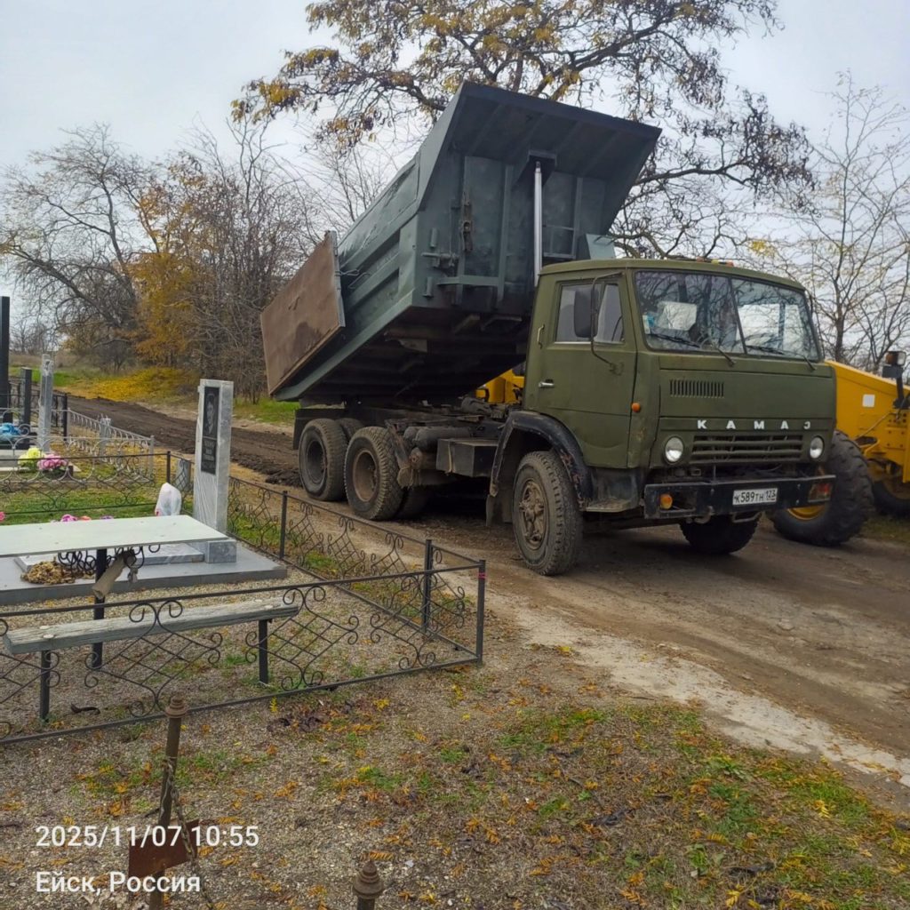 ЖКХ 7 ноября В Ейске ремонтируют дорогу на новом кладбищеДорогу засыпают грунтом, после чего ее выровняют для более удобного проезда машин.