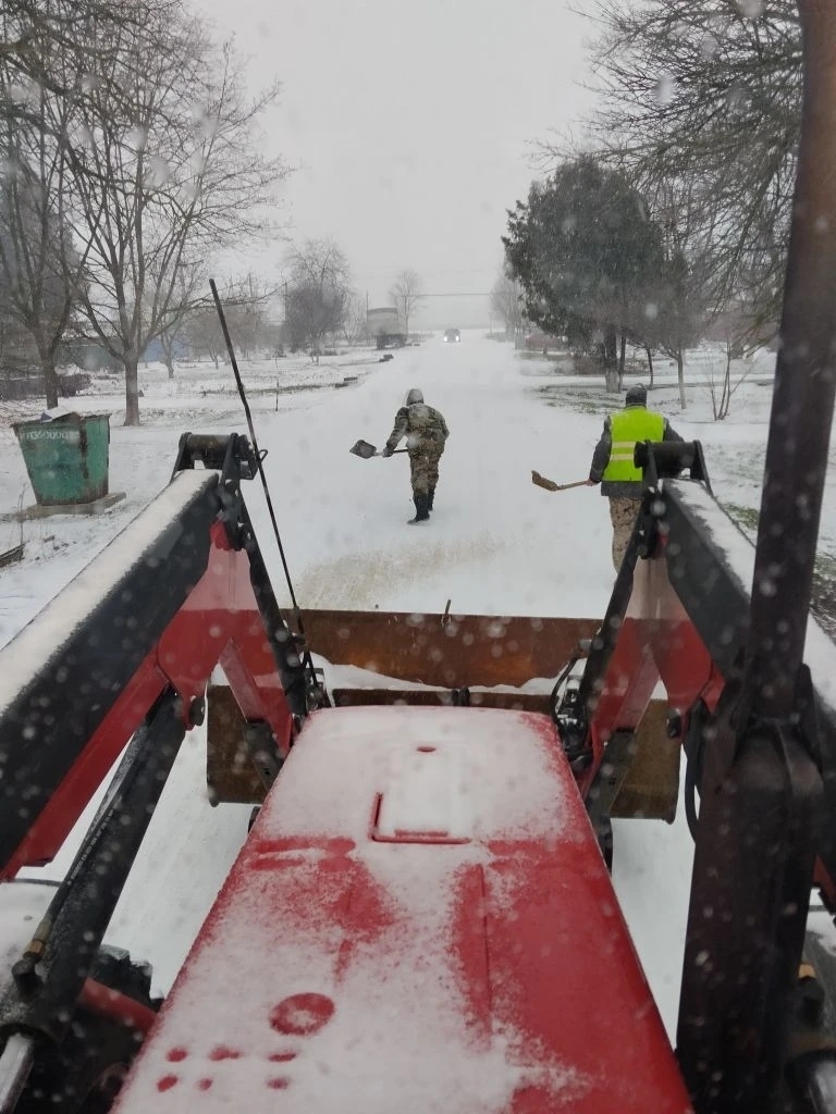 С утра на линию вышли 6 единиц техники от администрации и местных хозяйств. В приоритете – участки движения рейсовых автобусов и дороги вблизи социальных объектов.