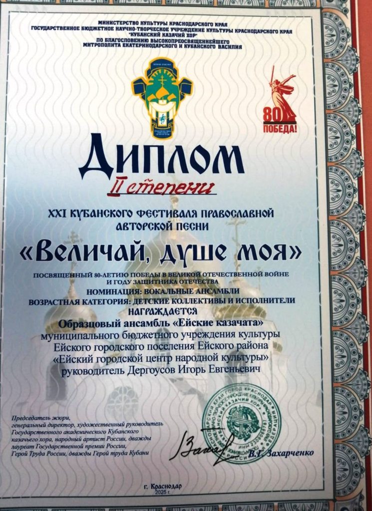 Наши казачата справились с поставленной задачей, по окончанию выступлений жюри вручило ансамблю диплом II степени.