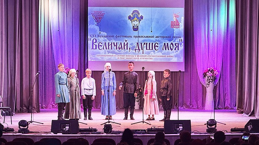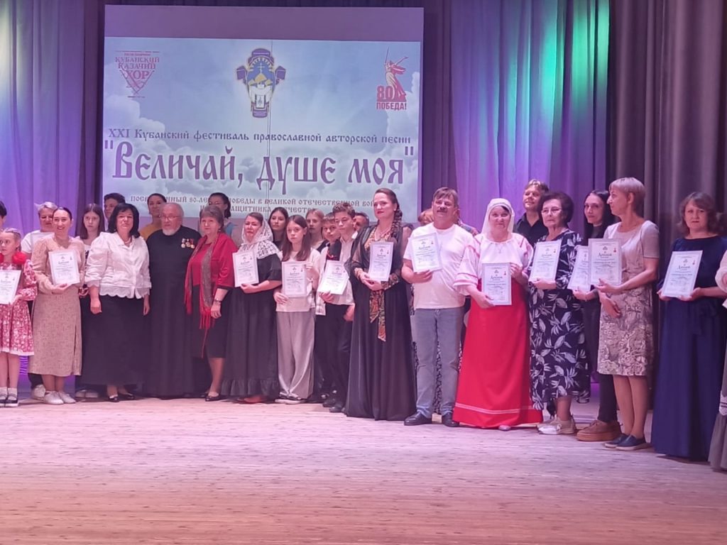 На сцене ДК Павловского района в зональном этапе XXI Кубанского фестиваля православной авторской песни «Величай, душе моя», посвященного 80-летию Победы в Великой Отечественной войне и Году защитника Отечества, выступили представители 13 муниципальных образований Краснодарского края: Белоглинский, Брюховецкий, Ейский, Каневской, Крыловский, Кущевский, Ленинградский, Новопокровский, Павловский, Приморско-Ахтарский, Тимашевский, Тихорецкий и Щербиновский районы.