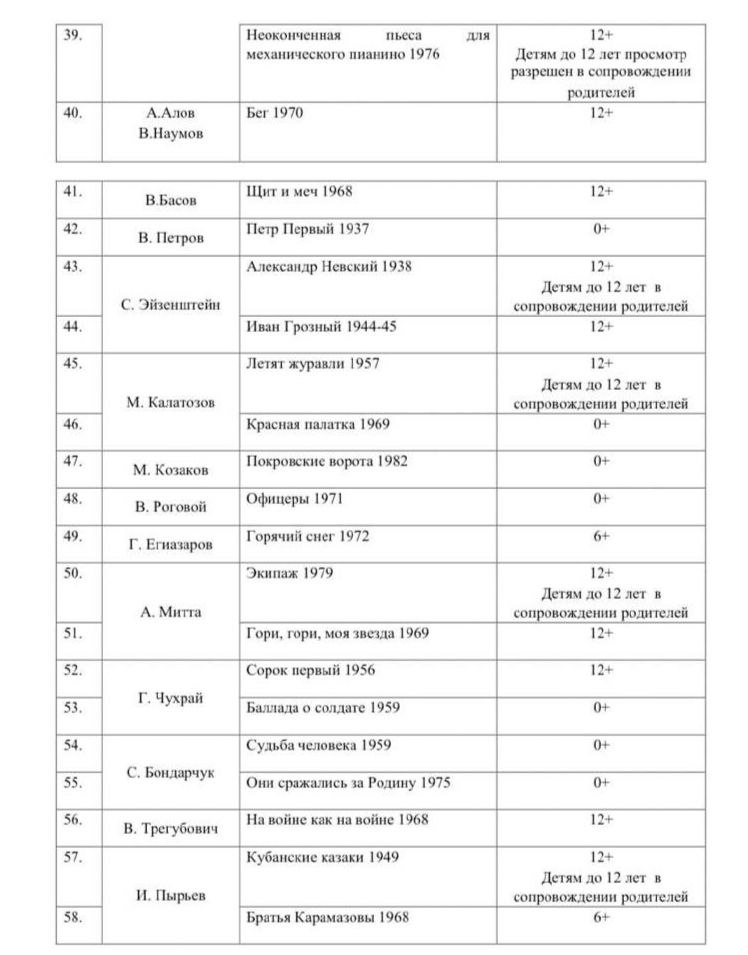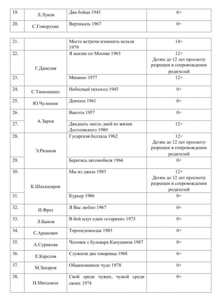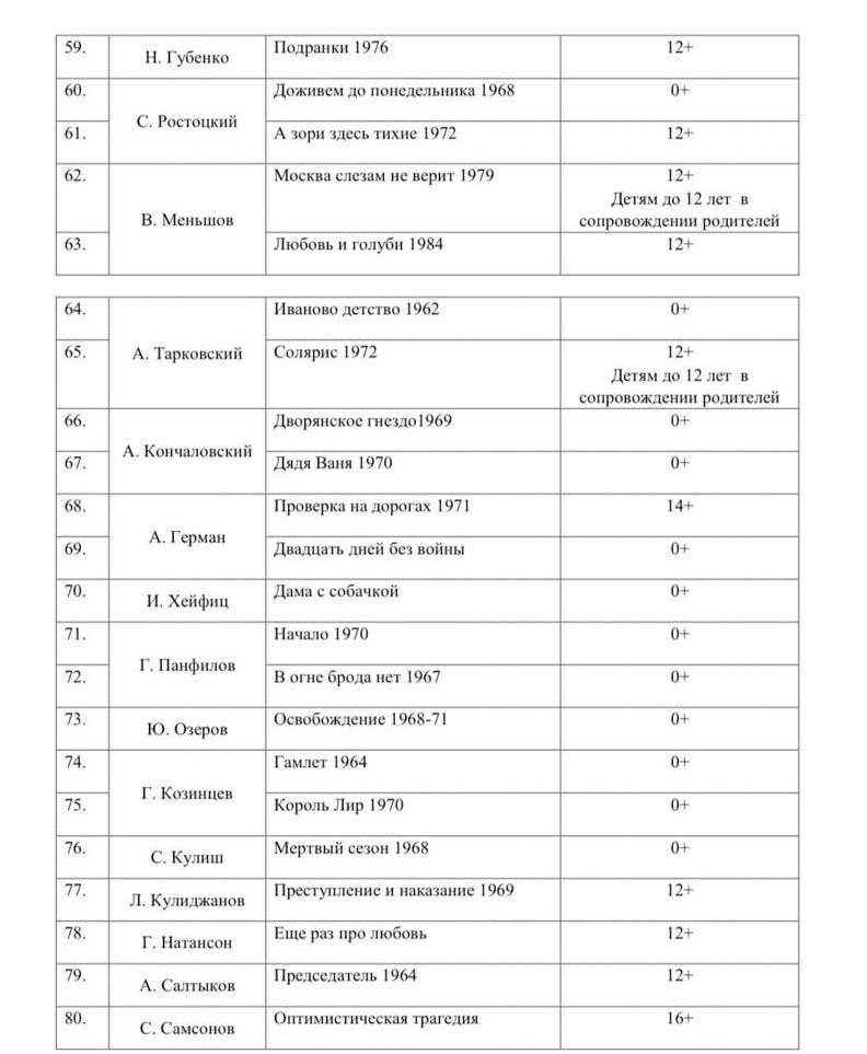 В списке картин «Вий», «Семнадцать мгновений весны», «Место встречи изменить нельзя» и многие другие культовые произведения советского кинематографа.