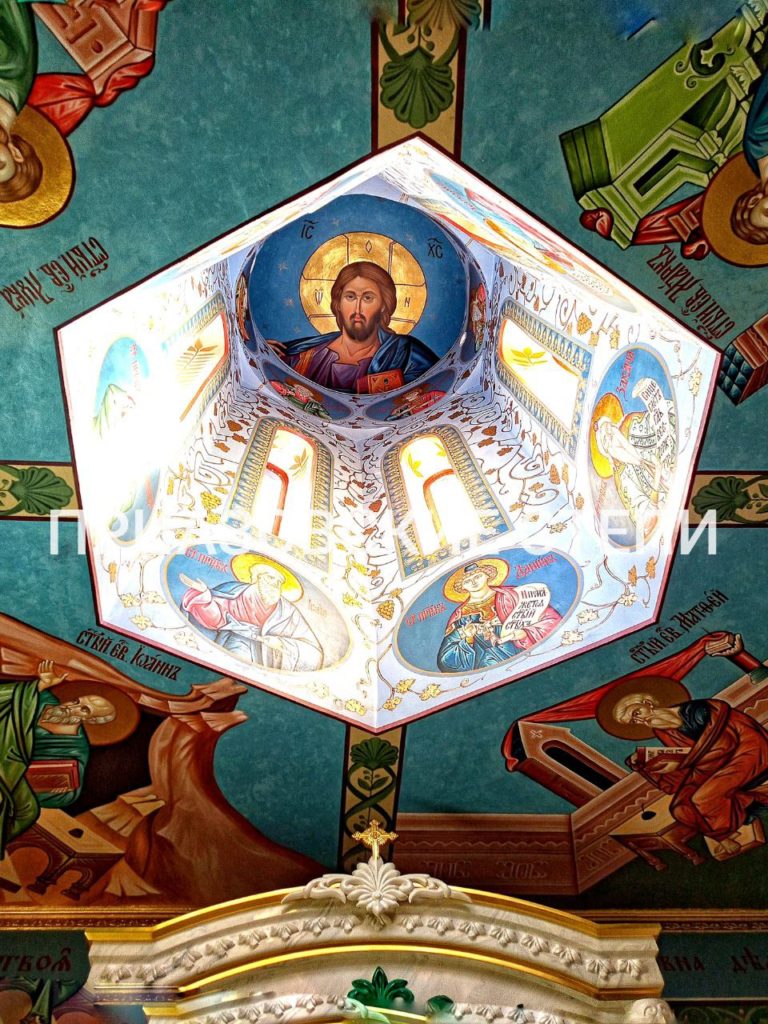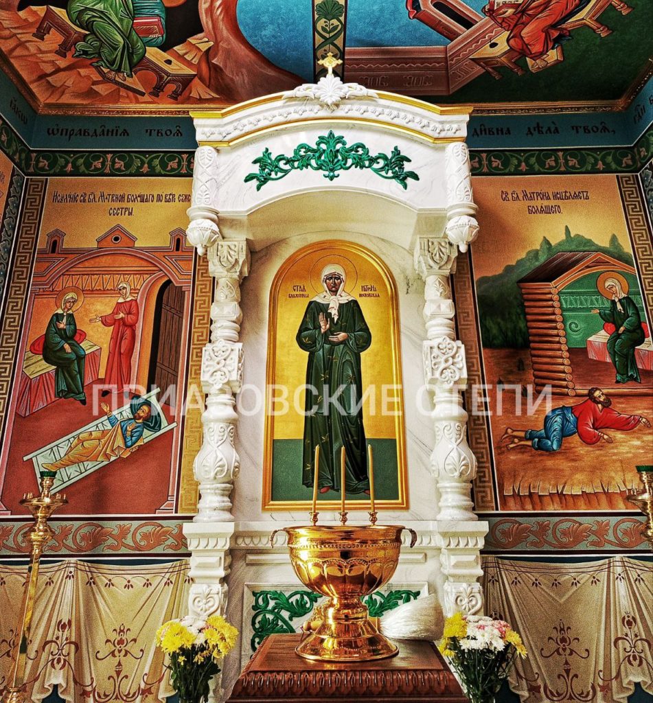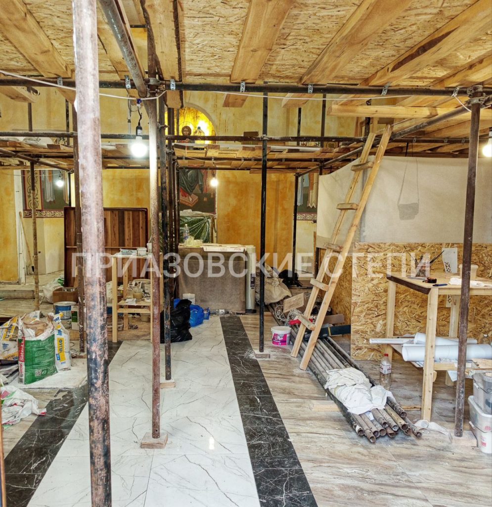 На территории храмового комплекса продолжается ремонт церкви Ксении Петербургской: здесь заменена электропроводка и сейчас расписывают стены.