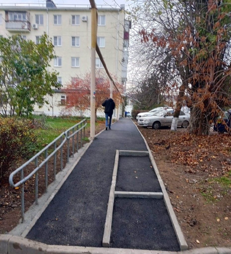 Уже начата укладка асфальтового покрытия, после чего выполнят монтаж тактильной плитки для безопасности лиц с ограниченными возможностями здоровья.