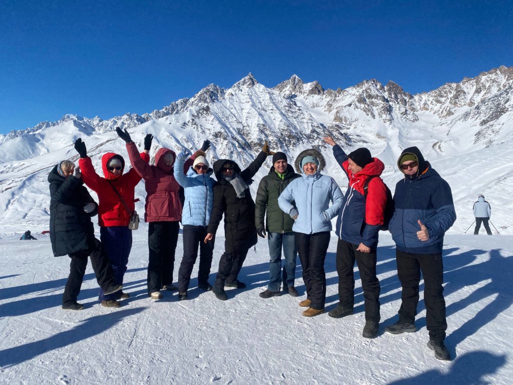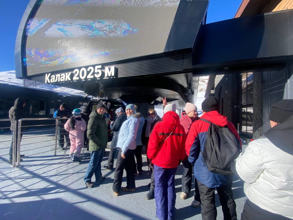 Канатка М-1 – сама длинная в Северо-Кавказском федеральном округе! Для лыжников и сноубордистов трассы в этом году открылись впервые, и любители активного отдыха ринулись покорять склоны. «Снега здесь не так много, как хотелось бы, – говорит гость из Воронежа, оказавшийся со мной в кабинке. – Но зато людей в разы меньше, чем в том же Сочи». В тот день мы постояли минут 5 в очереди за билетом на канатку и минут 10 ожидали свободную кабинку. В Домбае, в этот же период люди с лыжами и сноубордами ожидали входа на подъёмник более двух часов.