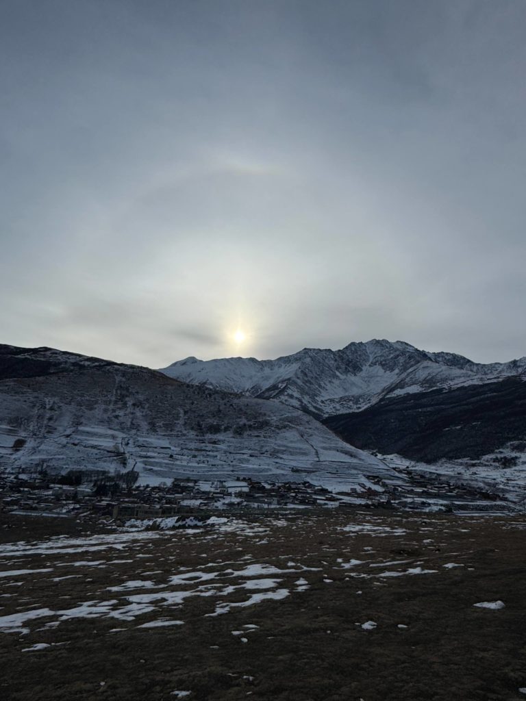 Подножия гор сверкали огоньками домов, хозяева которых украсили сотнями километров новогодних гирлянд как будто бы каждый уголок своих городов, сёл и посёлков. Наше пристанище скрывалось за огромной световой надписью «Цмити». Об этом я расскажу чуть позже.