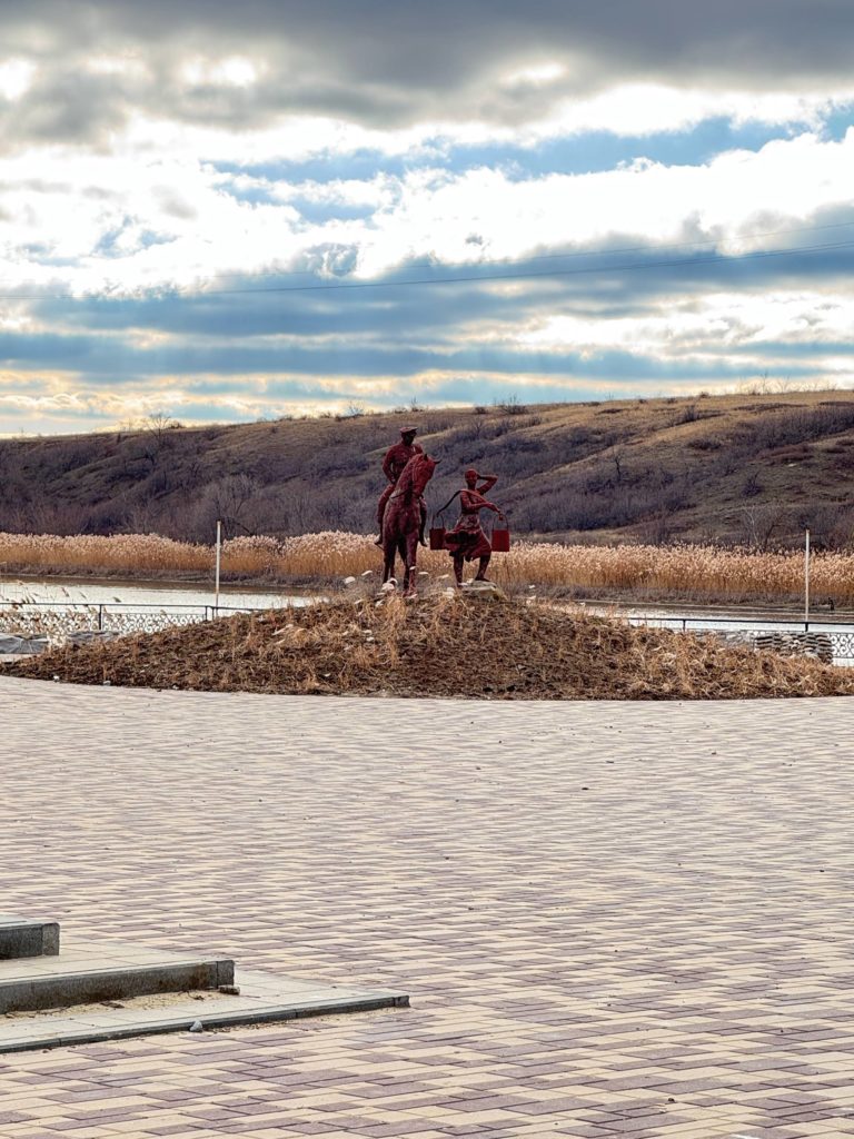 Событие многовековой давности послужило источником для написания величайшего памятника древнерусской литературы «Слово о полку Игореве». Отмечу, что есть и другие версии геолокации битвы: в окрестностях Таганрога, на реке Чир, и в Воронежской области, у реки Чёрная Калитва. Мне же ближе показалась именно история с Белой Калитвой. Кстати, «Калитва» в древнерусском выглядит, как «Каяла». Помните плач Ярославны: «И рукав с бобровою опушкой, наклонясь, в Каяле намочу»? Да и единственный в России и мире памятник легендарной битве установлен в 1970 г. на склоне горы Караул. 17-тонную чёрную глыбу из карельского диабаза я нашла легко. На ней как будто древней вязью выведена памятная надпись, а вокруг открывается отличный вид на Северский Донец. С высоты птичьего полёта я смотрела на реку, город, склоны, заросшие дикими травами, и, казалось, слушала шум битвы, стоны воинов, дыхание русской земли…
