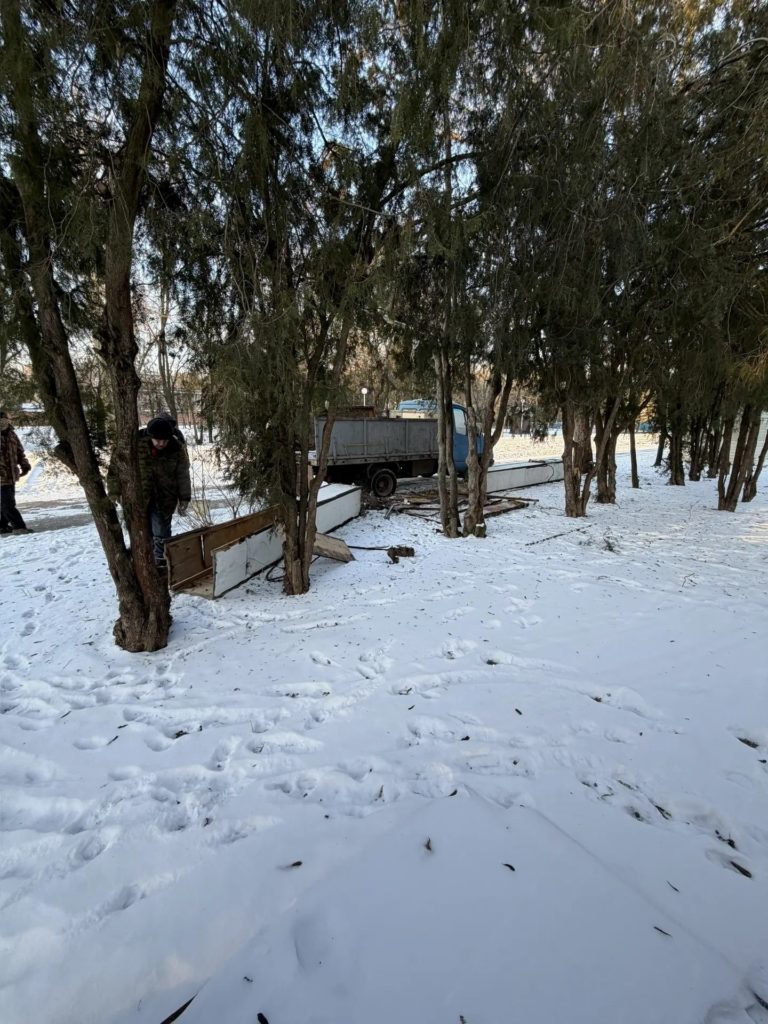 В парке Поддубного города Ейска демонтируют нестационарные торговые объекты