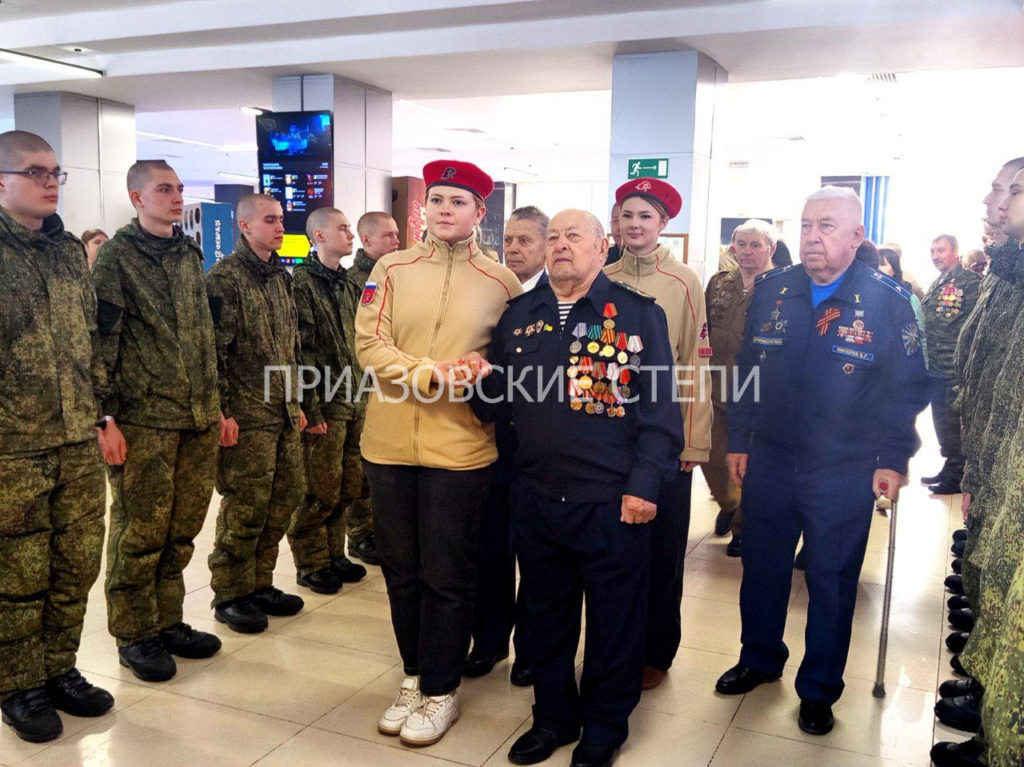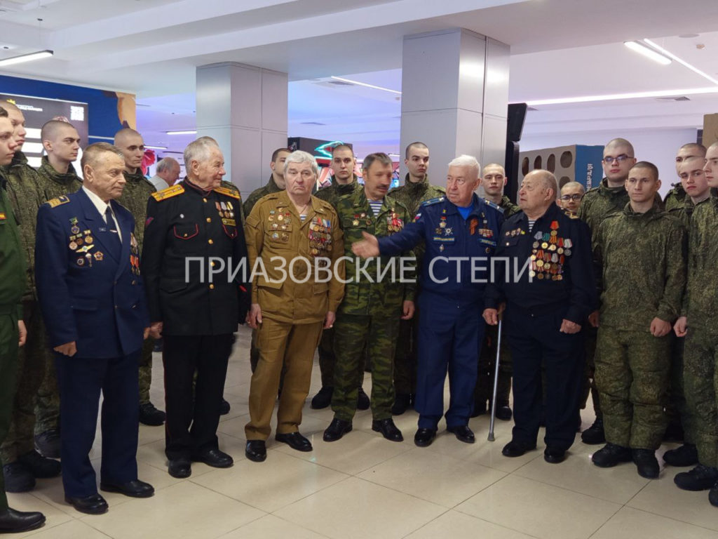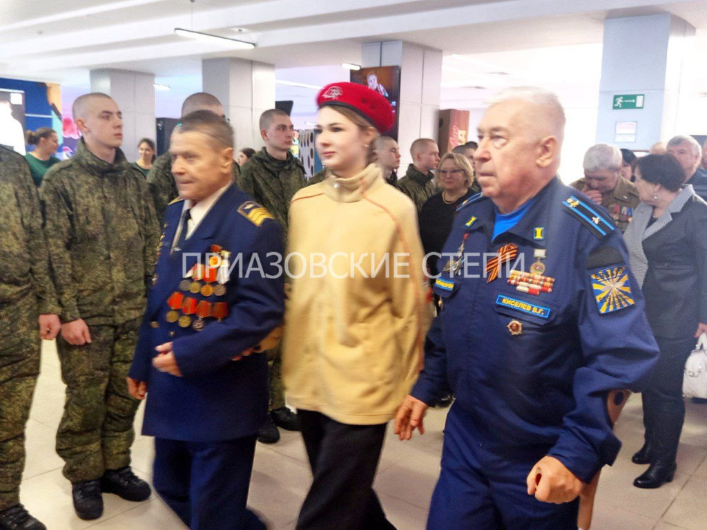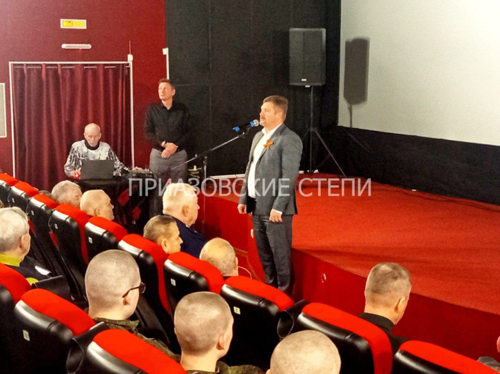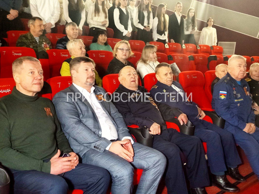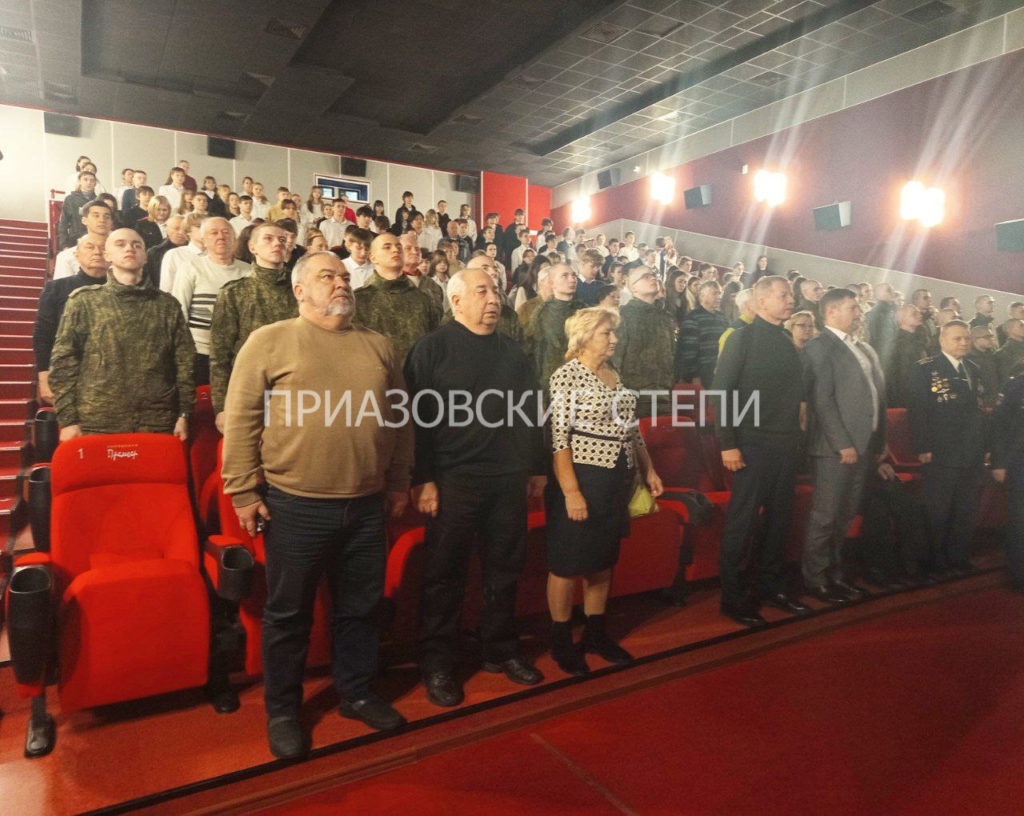 Сегодня в киноцентре прошла встреча, на которую были приглашены ветеран Великой Отечественной войны, участник штурма крепости Кёнигсберг Михаил Фёдорович Тимошенский, житель блокадного Ленинграда Юрий Николаевич Миняев, солдаты, проходящие срочную службу в ейском гарнизоне, школьники, юнармейцы.
