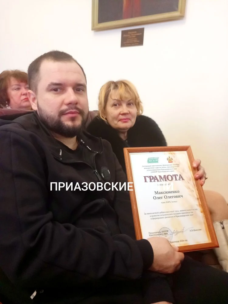Благодарственными письмами министерства сельского хозяйства и перерабатывающей промышленности Краснодарского края за многолетний добросовестный труд награждены индивидуальные предприниматели, главы КФХ Владимир Тюников, Алексей Гемеза, Руслан Парагульгов и член КФХ Дмитрий Гречищев. Почётными грамотами АККОР Краснодарского края были награждены более десяти фермеров-членов АККОР Ейского района.