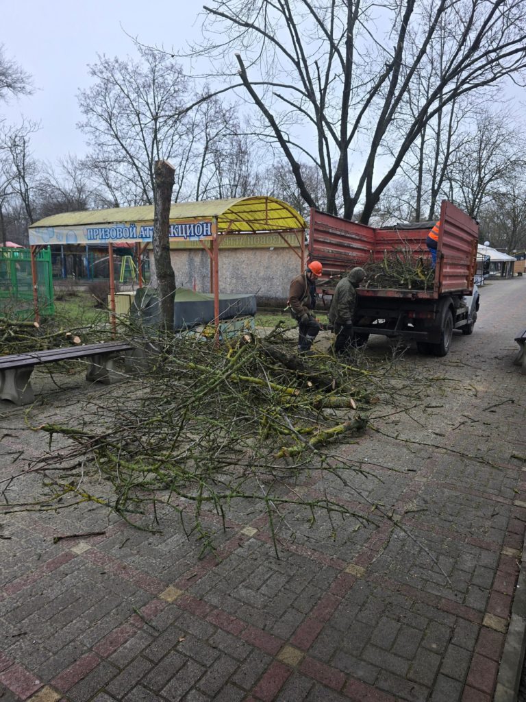 Вместе с сотрудниками ККБУ они делают санитарную обрезку деревьев. Ветки сразу же вывозят с территории.
