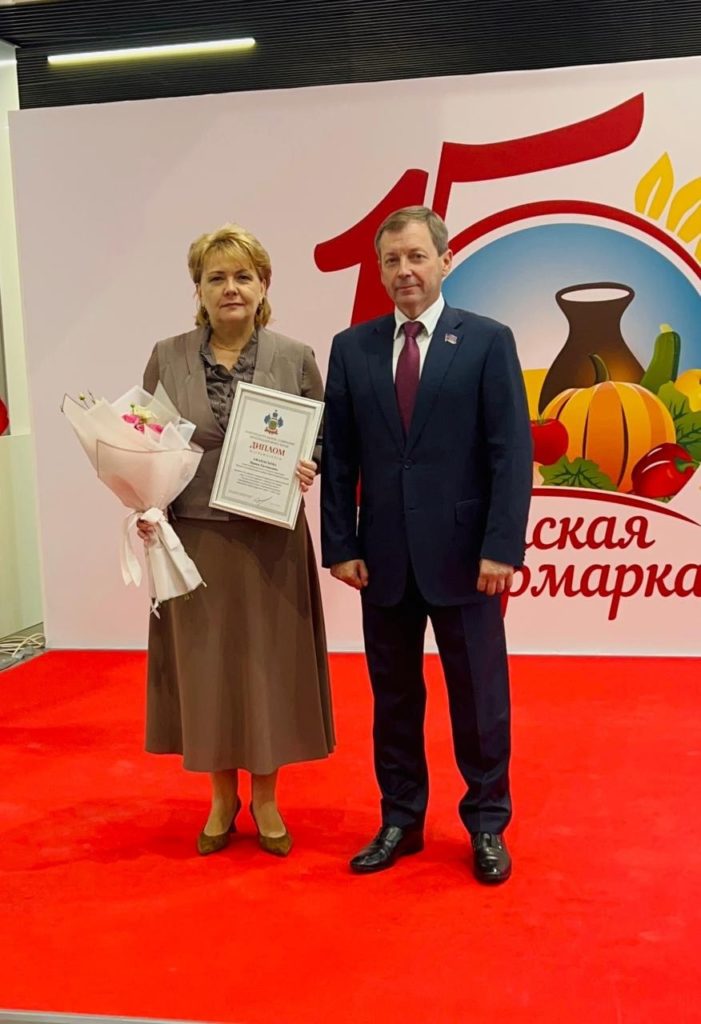 Глава поселения Ирина Афанасьева на XV агропромышленной выставке «Кубанская Ярмарка» получила награду из рук председателя комитета по развитию агропромышленного комплекса, продовольствию и потребительскому рынку ЗСК Сергея Орленко.