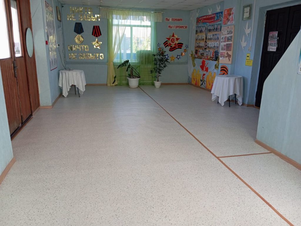 В Доме культуры завершена укладка нового полового линолеума за средства местного бюджета поселения — 499 638 руб. А саму его укладку провели силами директора СДК и его коллектива.