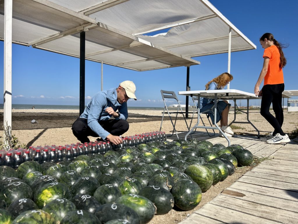 Главный герой соревнований — сочный арбуз, ставший не только трофеем, но и проверкой на выносливость: заданную дистанцию участники соревнований должны были преодолеть с ним в обнимку.