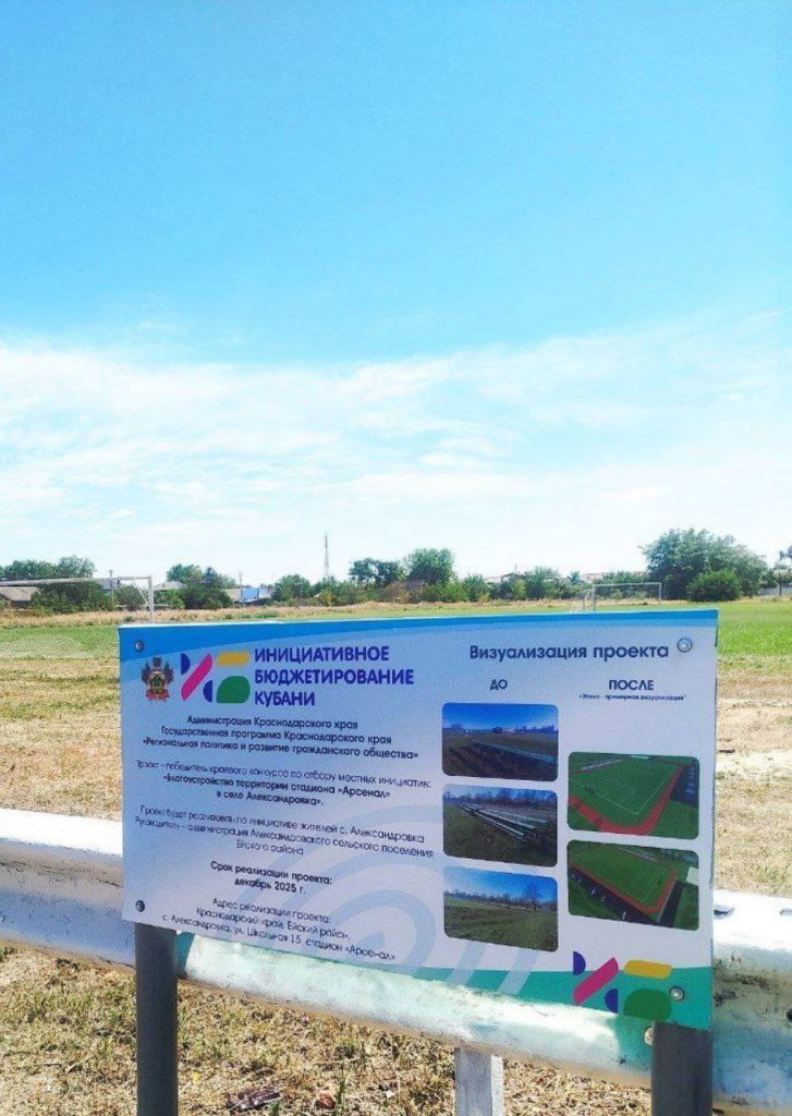 Глава Александровского сельского поселения Светлана Щеголькова выражает благодарность Губернатору и администрации Краснодарского края, администрации Ейского района. Участие в программе «Региональная политика и развитие гражданского общества», благодаря которой стало возможной благоустройство стадиона.