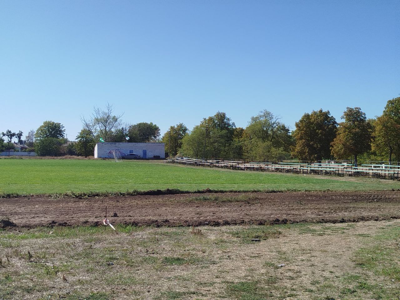 - идет нарезка и планировка грунта под будущие беговые дорожки с резиновым покрытием,