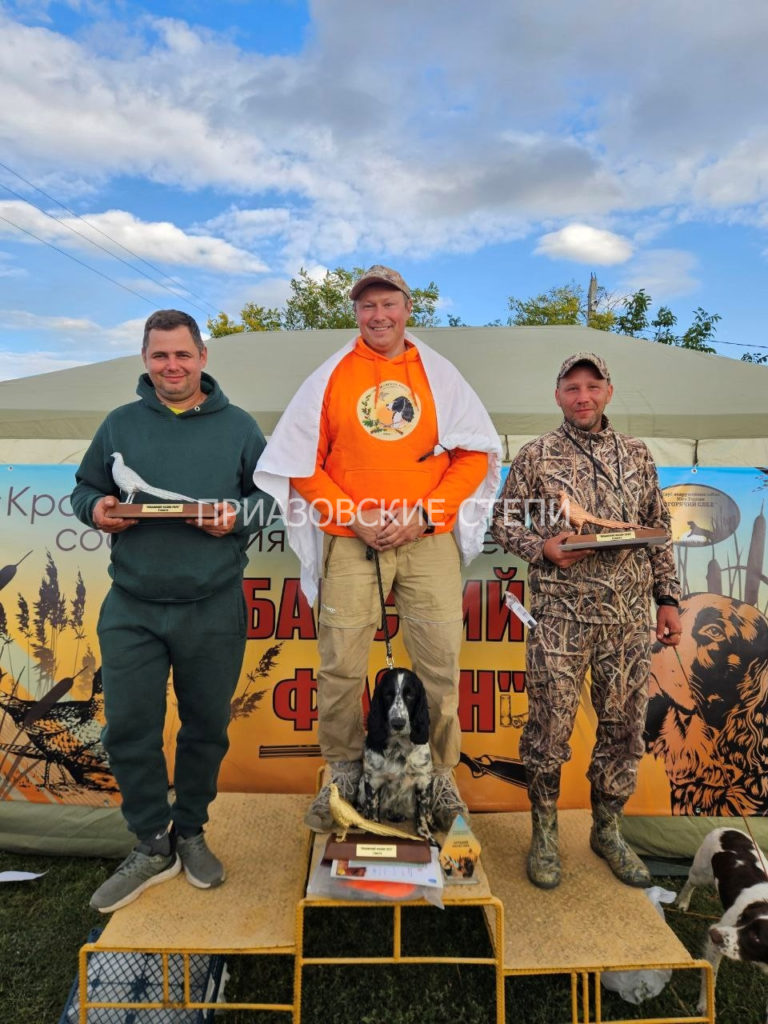 - 2 и 3 место разделили владельцы английских спрингер спаниелей — Александра Варава с АСС Азовский Бриз Елис и Алексей Гришин с АСС Мальта-Магри.