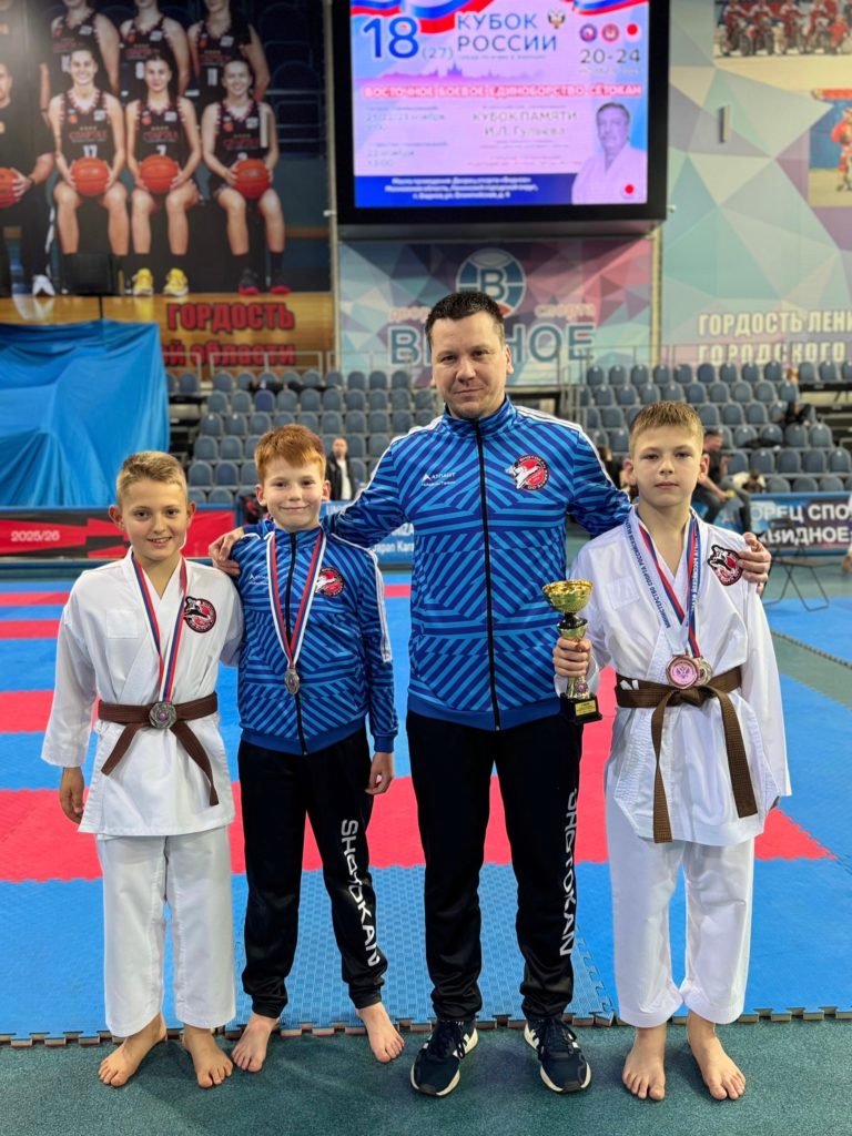 - Серебряные призёры в ката-группе 8-9 лет – Мамедов Мурад, Федосов Максим и Гальстер Владимир.