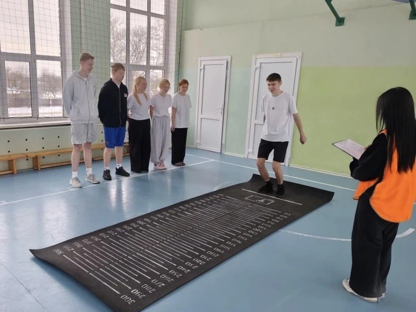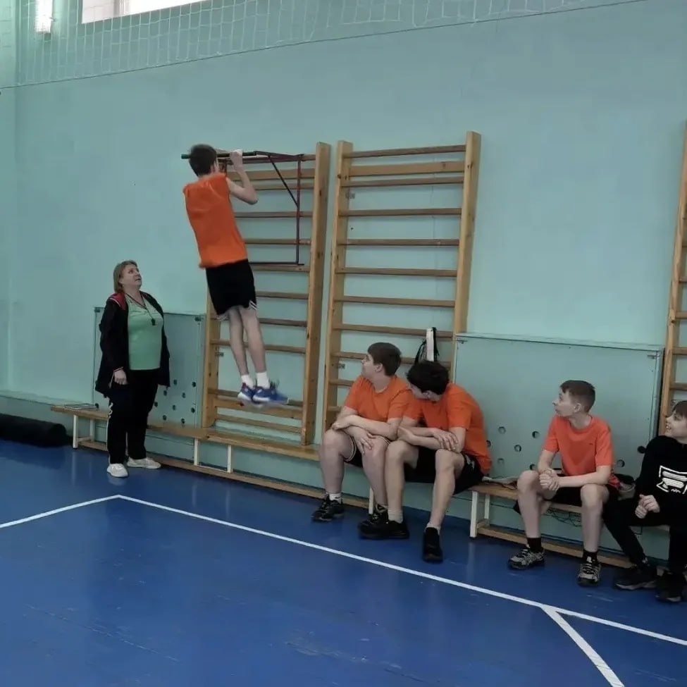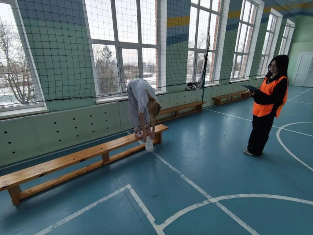 В спортзале лицея в Ейске школьникам предстояло сделать упражнения на пресс, наклоны вперед из положения стоя, отжимания, прыжки в длину, челночный бег, подтягивания из виса.