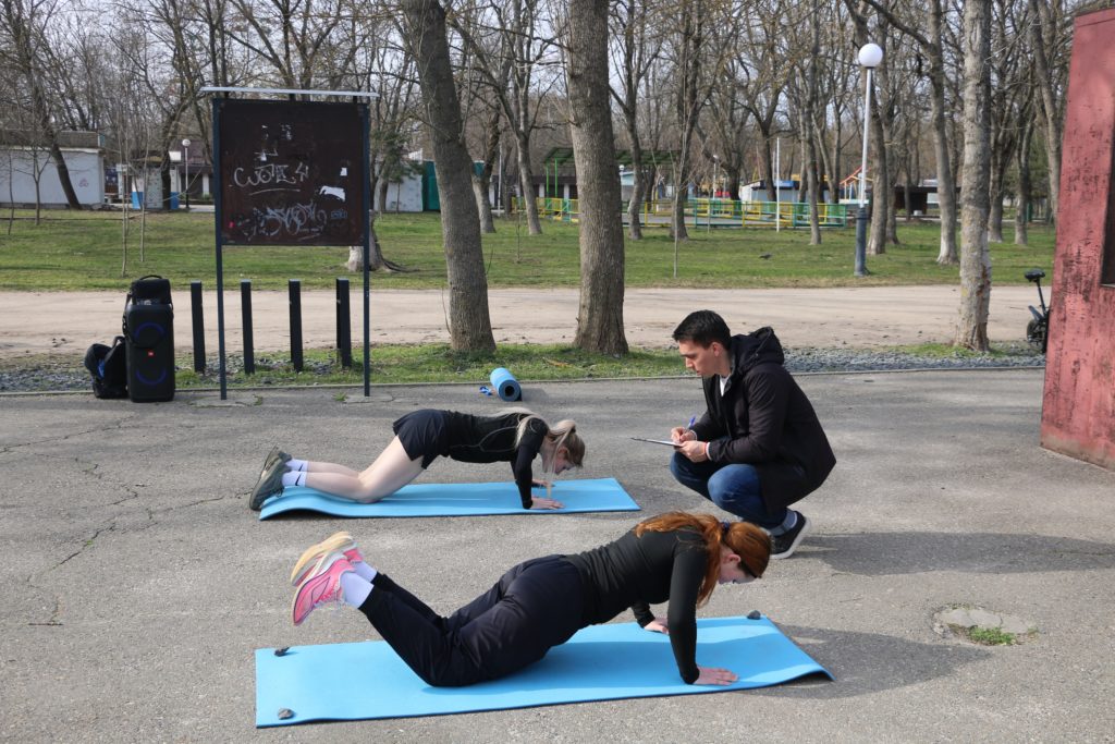 Ребятам предстояло пробежать 4 беговых отрезков по 200 м с тремя рубежами для выполнения силовых упражнений: