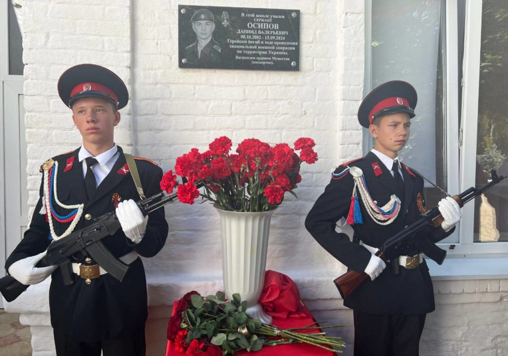 Право открыть мемориальную доску предоставили матери и бабушке погибшего – Елене Юрьевне и Нине Николаевне. После минуты молчания все присутствующие возложили цветы к памятной доске Даниила Осипова.