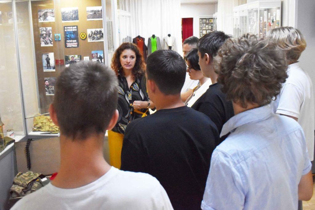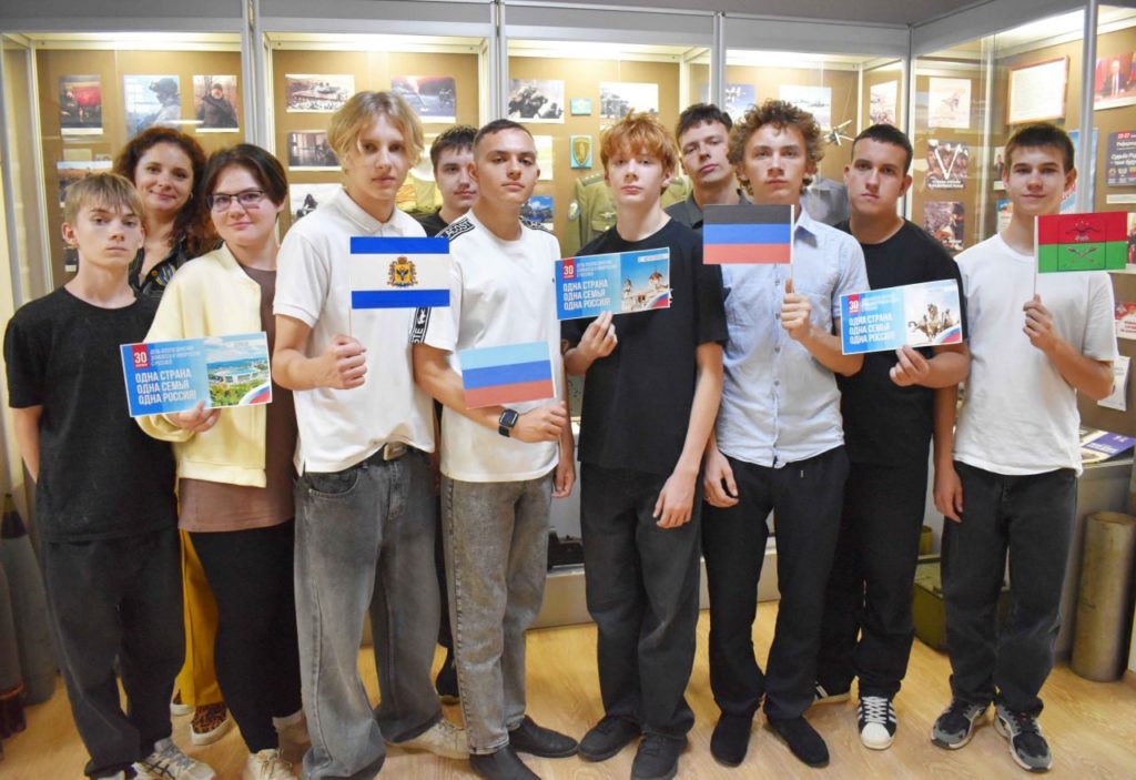 Ейский музей истории организовал для студентов Ейского полипрофильного колледжа экскурсию по выставке, где ребятам рассказали интересные факты из истории Донбасса и Новороссии, а также познакомили их с выставкой музея, посвященной ейчанам – участникам СВО.