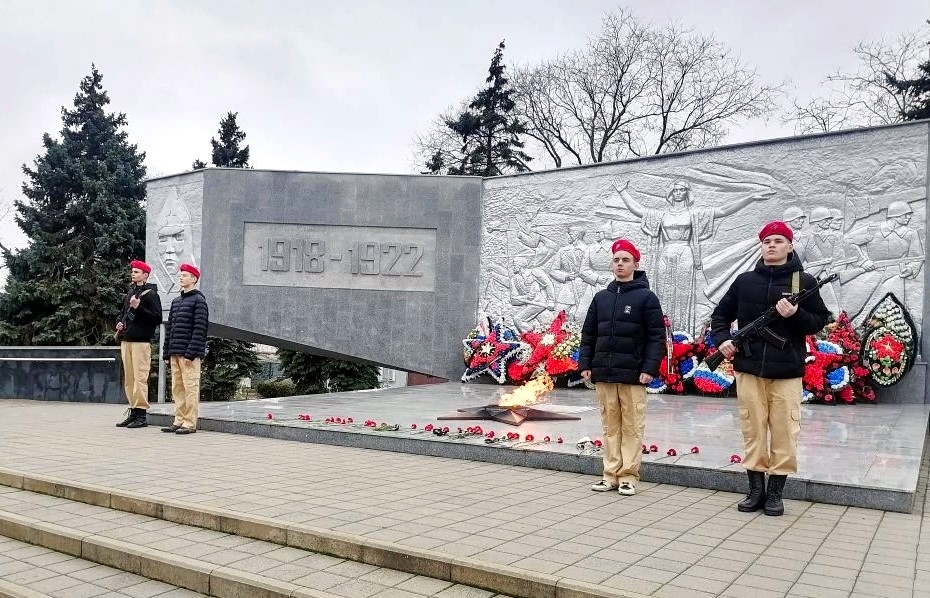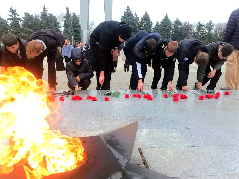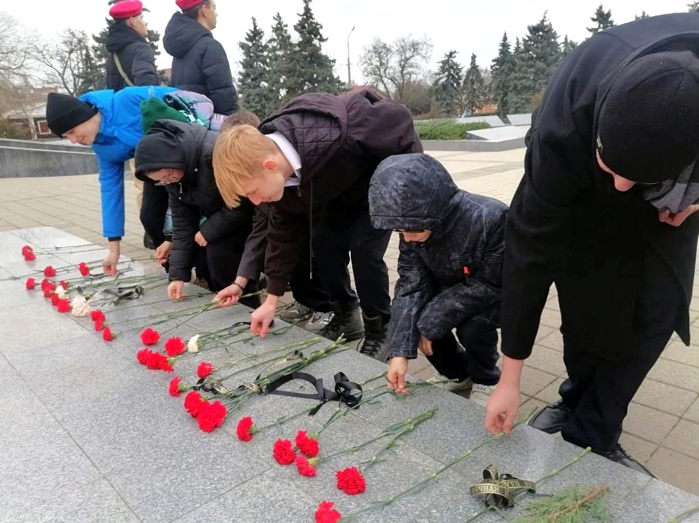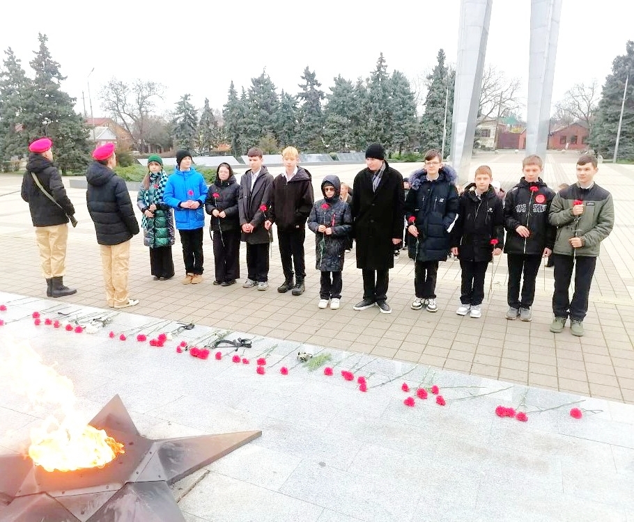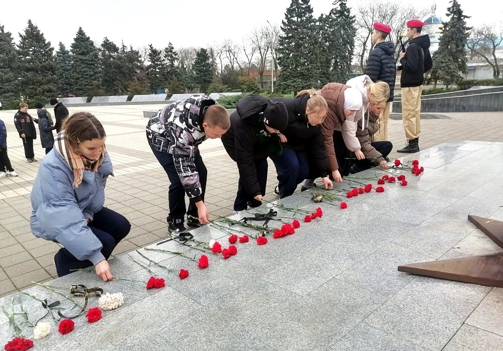 Молодёжь почтила память погибших возложением цветов к Вечному огню на площади Революции г. Ейска.
