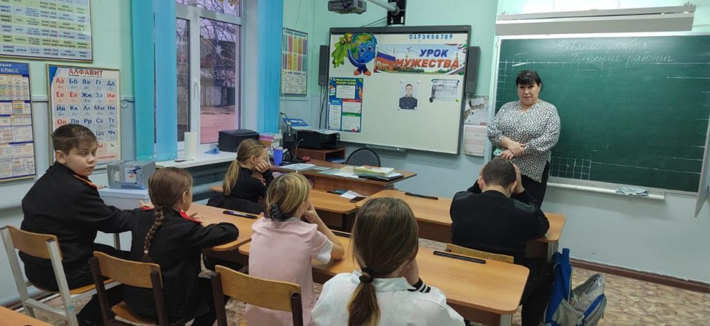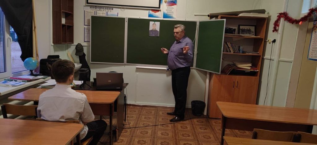 На уроке звучали воспоминания учителей, демонстрировались фотографии. История выпускника стала для школьников примером настоящего мужества и долга.