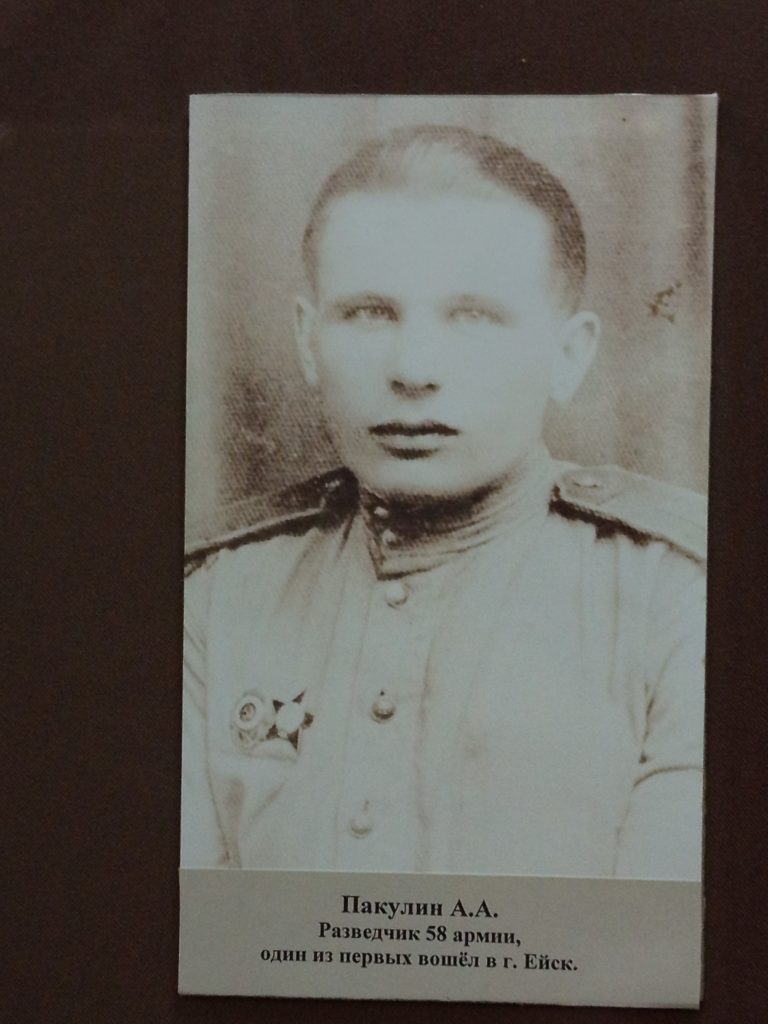Разведгруппа встретила девочку и мальчика, солдаты расспросили детей: есть ли в городе немцы, как проехать в центр города. Сегодня фото ребят вместе с мамой и портретный снимок сержанта размещены рядом на постоянной выставке в Ейском историко-краеведческом музее.